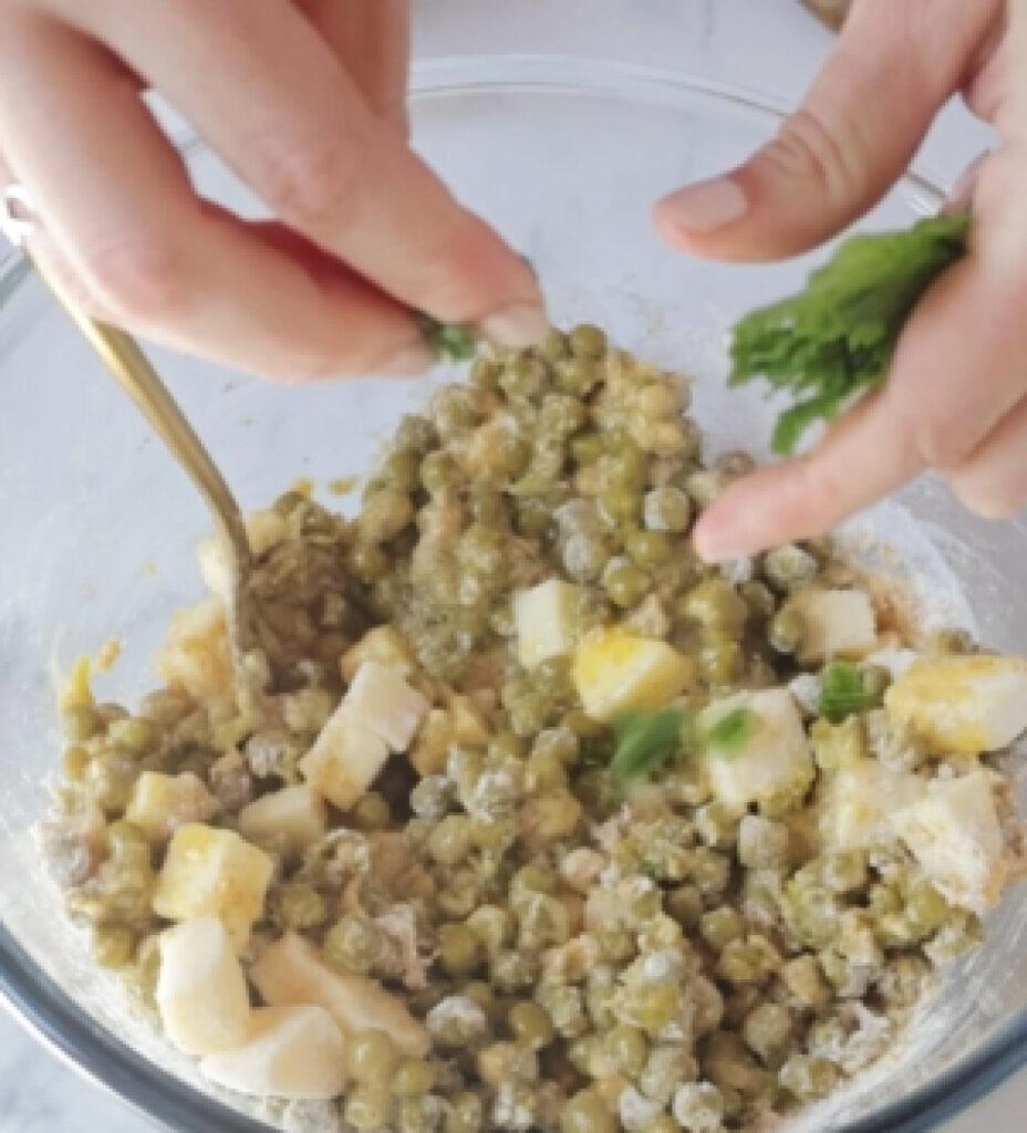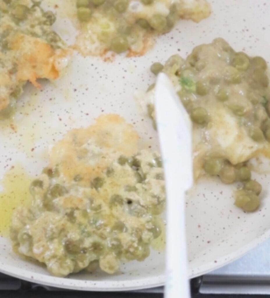 Si preferís una textura más homogénea, podés pisar ligeramente las arvejas con un tenedor.
