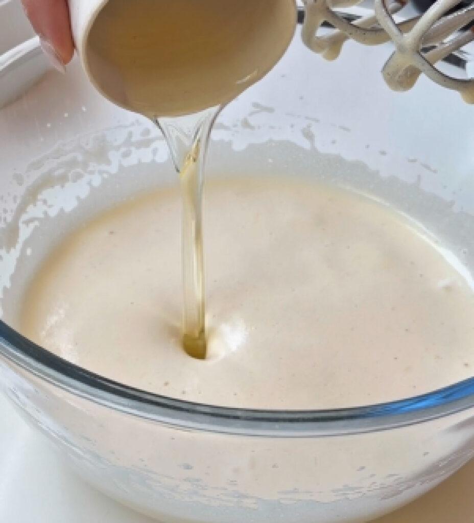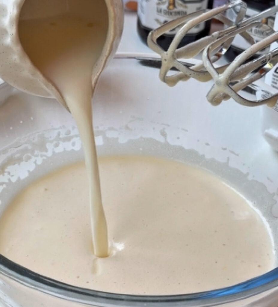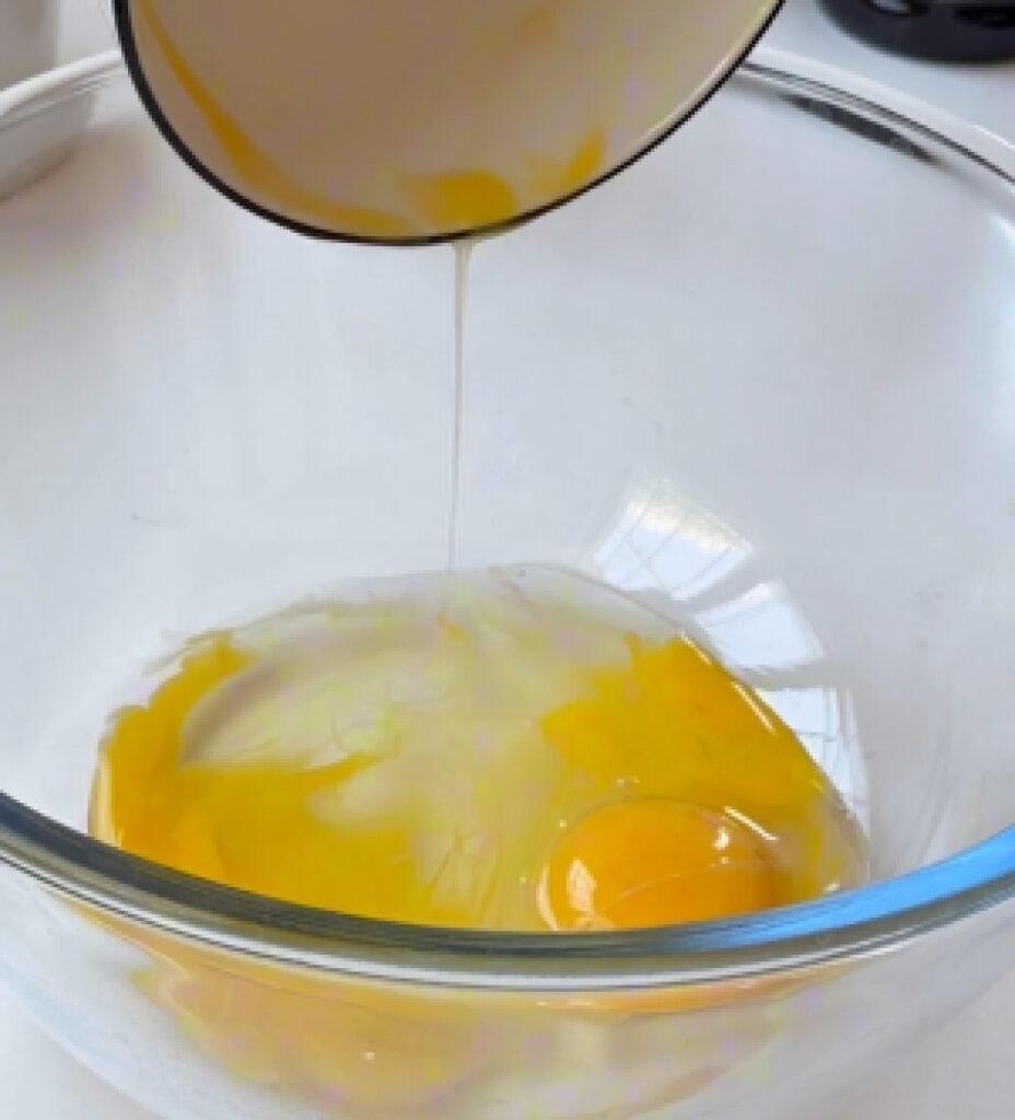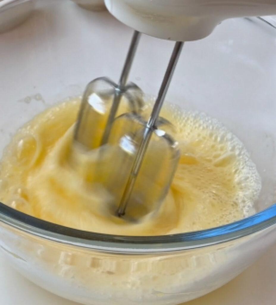 Batí los huevos junto con el azúcar hasta lograr una mezcla clara y bien espumosa.