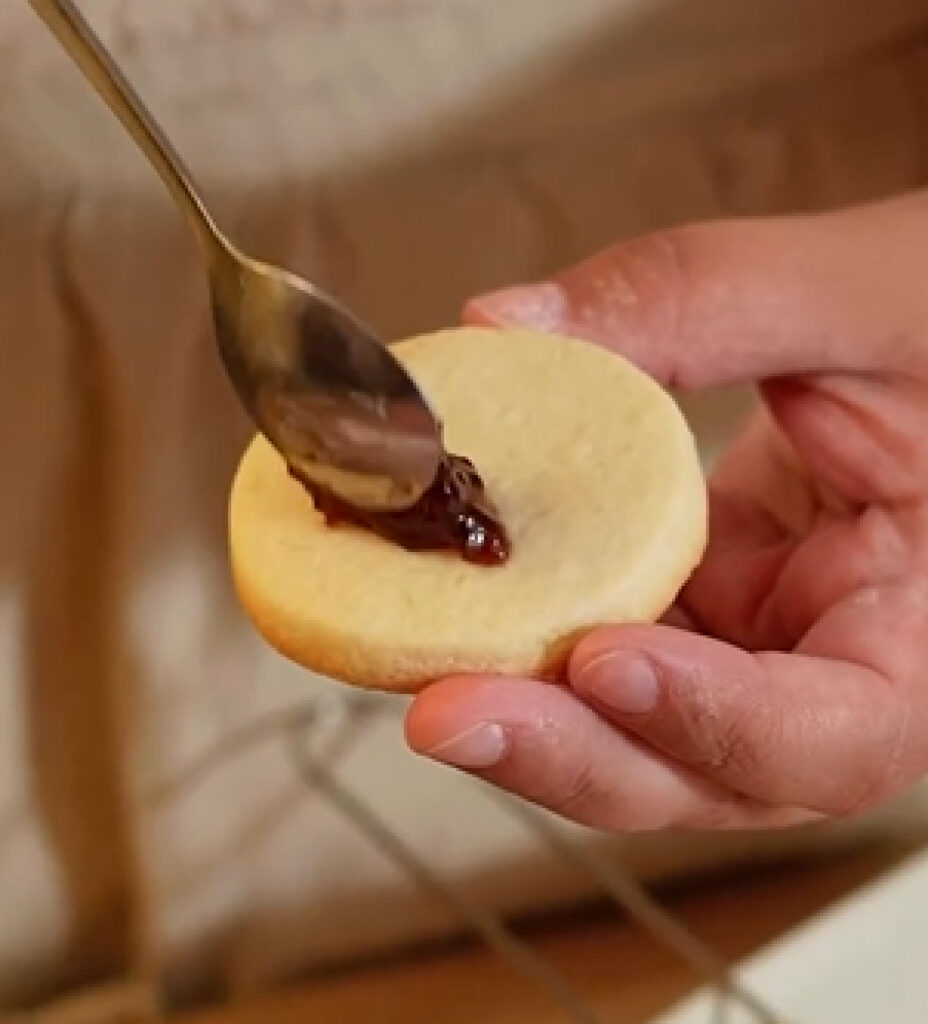 Una vez frías, rellenar las cookies con mermelada de frambuesa (o la de tu preferencia) La Gioconda, cuya textura suave y sabor natural permiten lograr un equilibrio ideal entre dulzura y acidez. Este detalle convierte a las cookies en una propuesta más refinada, con identidad gourmet y sabor auténtico.