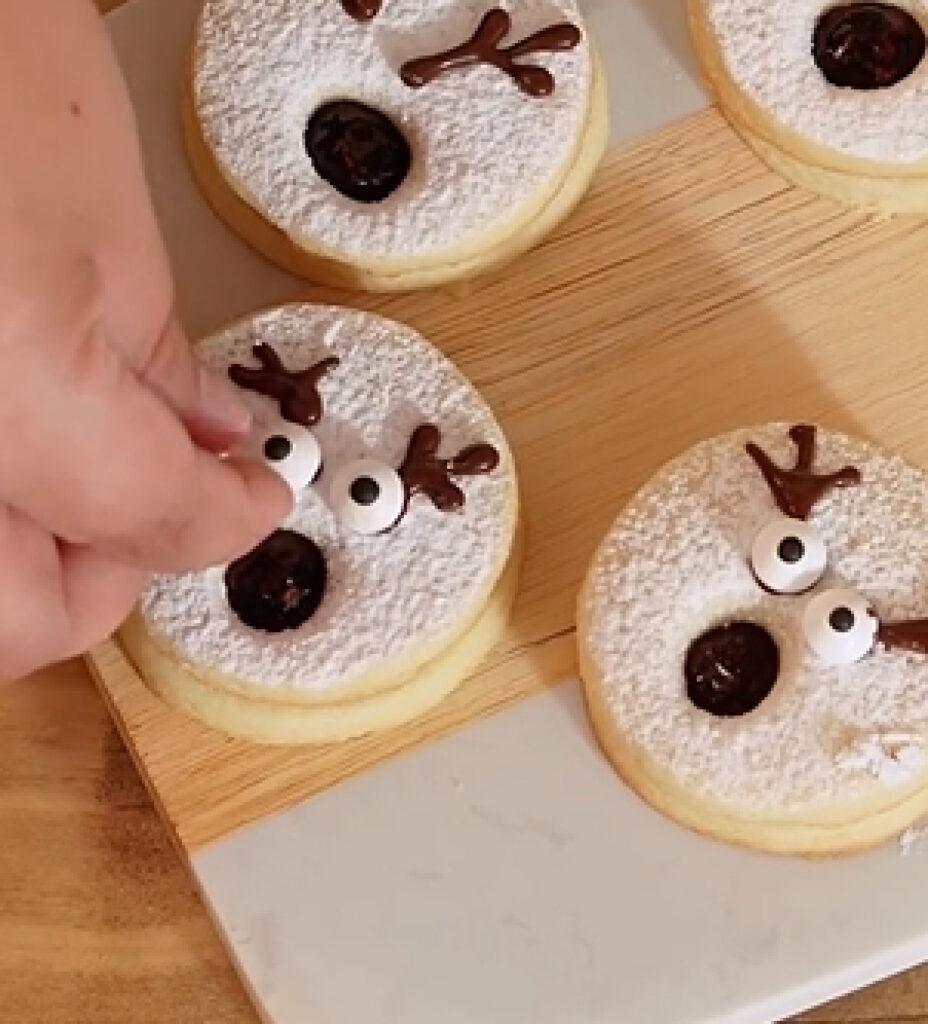 Estas cookies navideñas rellenas son ideales para regalar en cajas navideñas o latas decorativas, acompañadas de una cinta o etiqueta artesanal. También lucen perfectas en una mesa dulce, combinadas con otras cookies o pequeños bocados navideños.