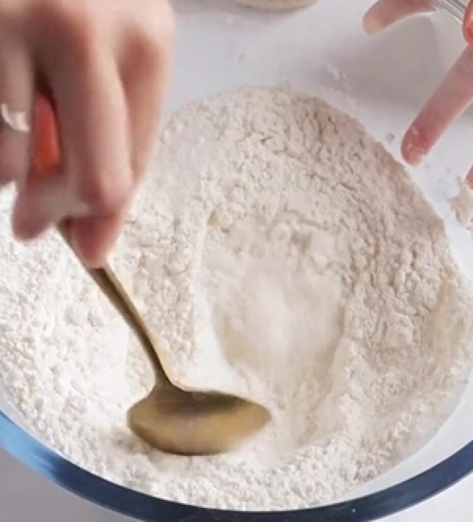 En un bowl, mezclá la harina con el azúcar, la sal y el bicarbonato de sodio.