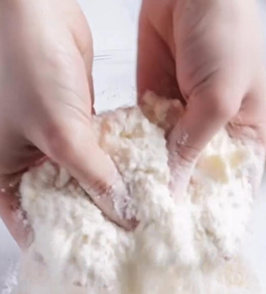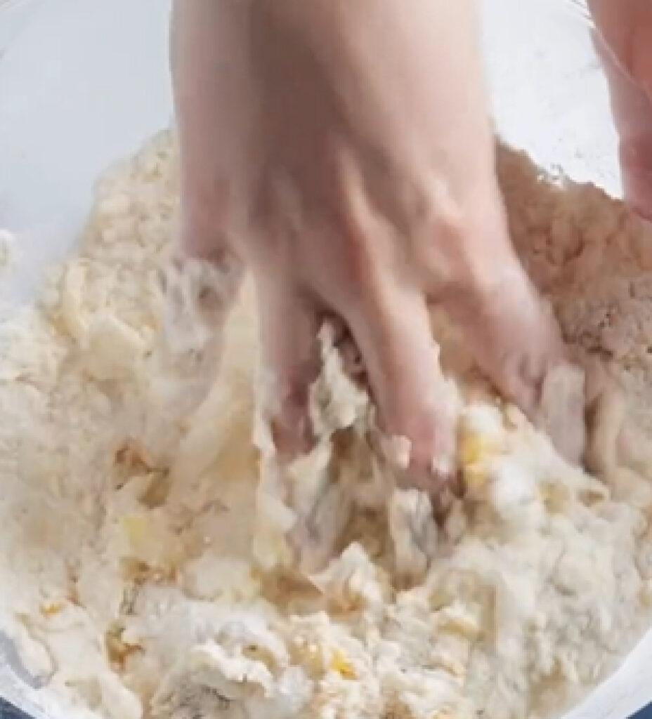 Incorporá la manteca fría en cubos y trabajá con las manos hasta lograr un arenado fino y uniforme.