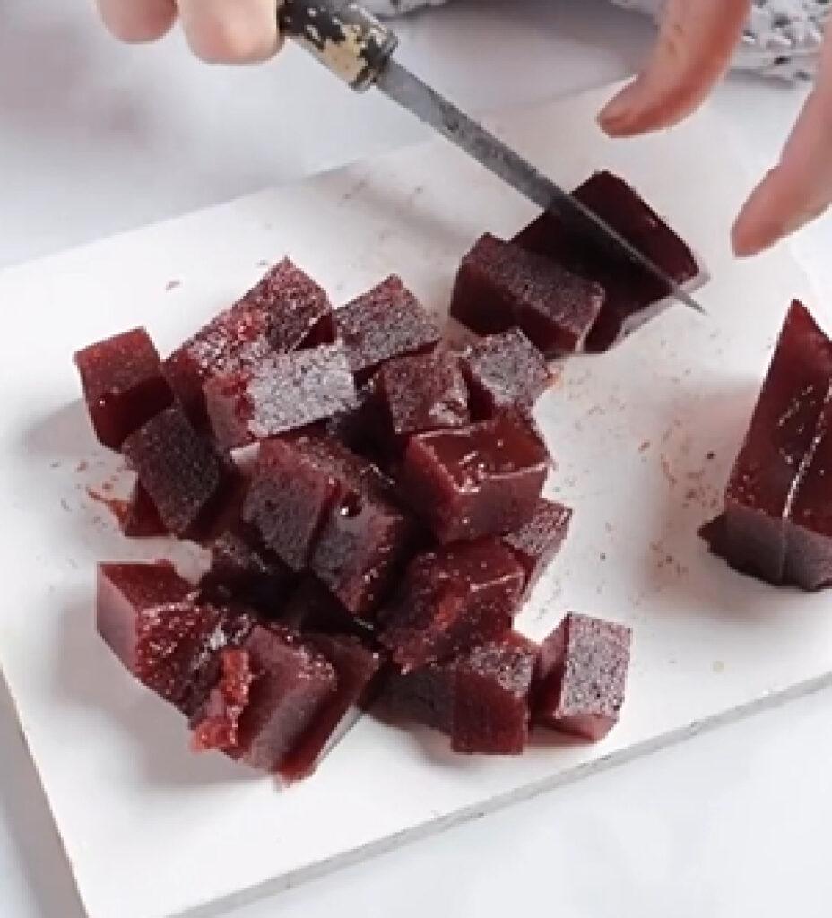 Retirá y cortá cuadraditos de aproximadamente 3 cm con un cuchillo bien afilado o espátula.