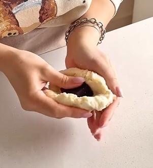 En el centro colocá un cubito de dulce de membrillo La Gioconda y cerrá bien.