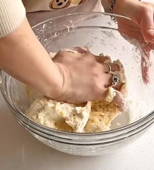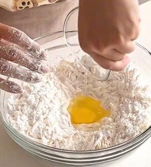 Agregá el huevo y un poco de leche, integrando hasta obtener una masa apenas unida.