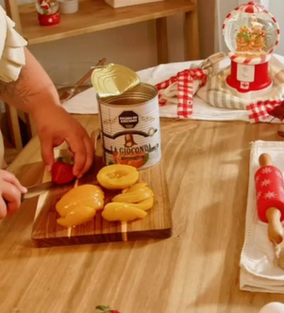 En esta versión, los duraznos en almíbar La Gioconda aportan frescura, dulzura natural y un toque elegante que transforma esta receta en una propuesta ideal para lucirse en estas fiestas. Con un resultado sofisticado, cada ingrediente aporta su protagonismo. Disfrutá esta receta creada por @carobaibiene, ideal para lucirte en estas fiestas.