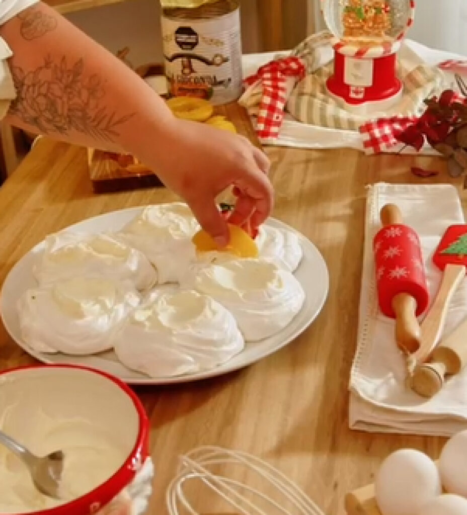 - Respetá la cocción lenta: es clave para que la pavlova quede seca por fuera y suave por dentro.